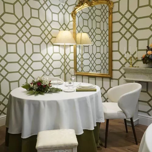 Adjacent to the Parador, Reina XIV channels the grandeur of the nearby Royal Palace through décor and menu alike. Chef Borja Aldea, shaped by stints at Etxanobe and Disfrutar, revisits the court kitchens of Philip V with contemporary precision—judiones de la Granja arrive in pheasant consommé, while Segovian trout gets a modern reimagining. A theatrical dining room for historically minded gastronomes.