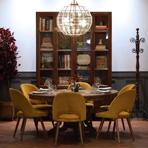On the outskirts of Valladolid, this Menorcan farmhouse-style retreat draws couples seeking candlelit romance beside crackling open fireplaces. The kitchen honors Castilian tradition while pushing it forward—goat with alioli, slow-braised tripe, and a 70-day-aged Sanabresa T-bone that has earned devoted followers. Albufera rice dishes round out a menu built for celebration amid landscaped grounds.