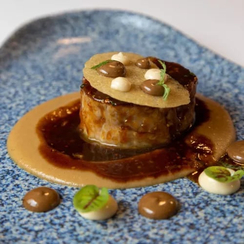 A former wine merchant's from the 1970s, La Prensa now holds a Michelin star under chef Marisa Barberán, whose contemporary cuisine draws on Aragonese seasonal produce with technical precision. Two tasting menus showcase dishes that play with texture and color in a minimalist dining room accented by designer touches. Her husband David Pérez oversees wine pairings with the same exacting standards.