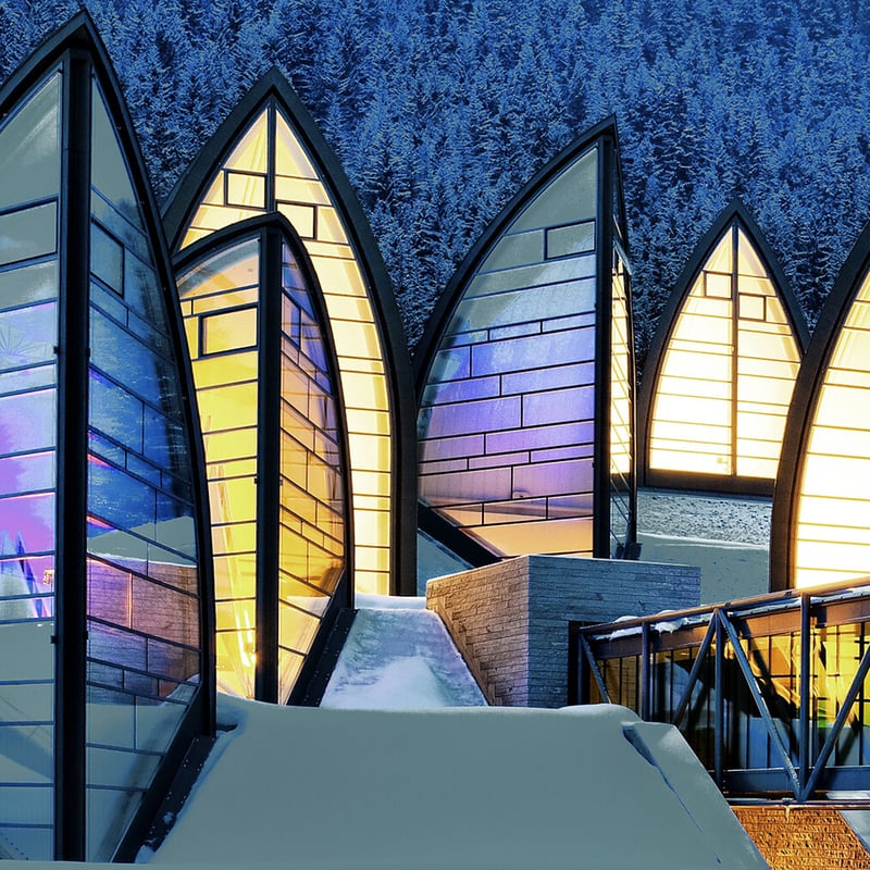 A private funicular whisks skiers from lobby to slopes in four minutes, while Mario Botta's sculptural 5,000-square-metre spa—its skylights rising like sails above the snow—anchors the après-ski ritual. The 130 rooms blend 1960s modernism with Carlo Rampazzi's warm interiors and panoramic Alpine views. Families find interconnecting suites and a kids' club; gastronomes, the two-Michelin-starred La Brezza.