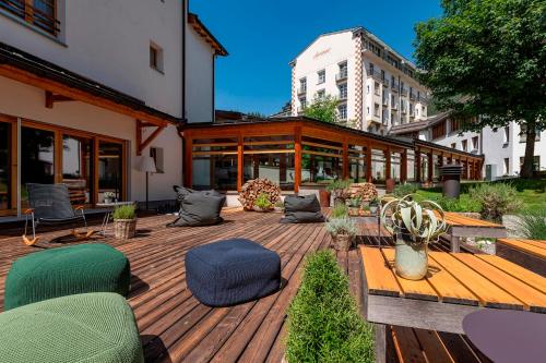 A century of Alpine hospitality unfolds across two distinct wings: the traditional Waldhotel and the contemporary Chesa Silva, together housing 124 rooms. The sophisticated spa complex features Turkish bath, sauna, and indoor pool, while skiers benefit from on-site equipment rental. Dining splits between the show kitchen theatrics of Thomas Mann Restaurant and the wood-panelled intimacy of Kachelofa-Stübli. Families appreciate the kids' club; pets welcome.