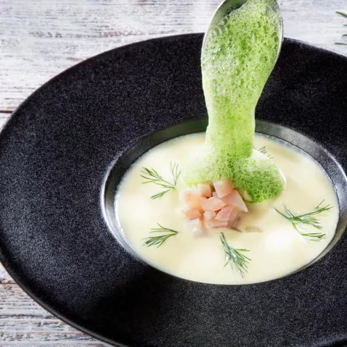 The brasserie counterpart to Le Sommet delivers its own compelling case for a visit, serving creative regional cooking in a warmly contemporary room of polished wood and clean lines. Stuffed morels in cream sauce anchor the seasonal repertoire, while pike-perch pulled from nearby lakes speaks to the kitchen's locavore instincts. Window tables frame Gruyères Castle—an alpine tableau that elevates the meal.