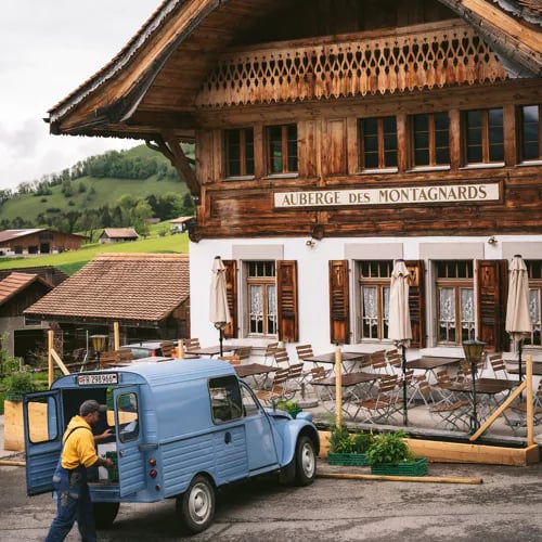A wooden-clad village inn with serious sustainability credentials, Auberge des Montagnards sources game from hunters working the surrounding forests—venison and wild boar prepared with rustic finesse. Lake Geneva whitefish arrives as delicate carpaccio, paired with tangy cream and crisp vegetables. The intimate terrace out front catches afternoon light, ideal for leisurely meals rooted in local tradition.