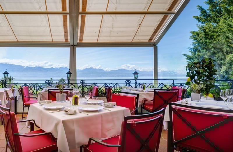 La Table d'Edgard is without a doubt the place to be at Lausanne Palace. Chef Edgard Bovier, who's been at the helm since 2004, has been awarded a Michelin star. His gourmet restaurant features highly refined recipes that guests can explore with the Plaisir, Soleil de Méditerranée, or Signature tasting menus, or order à la carte. The Brasserie Grand Chêne, on the other hand, offers a different ambiance, displaying all of the hallmarks of a Parisian restaurant; green leather seats, waxed parquet floors, and copper accents set the tone. The Brasserie's menu includes classic French fare such as steak tartare, sole meunière, and Burgundy escargots.