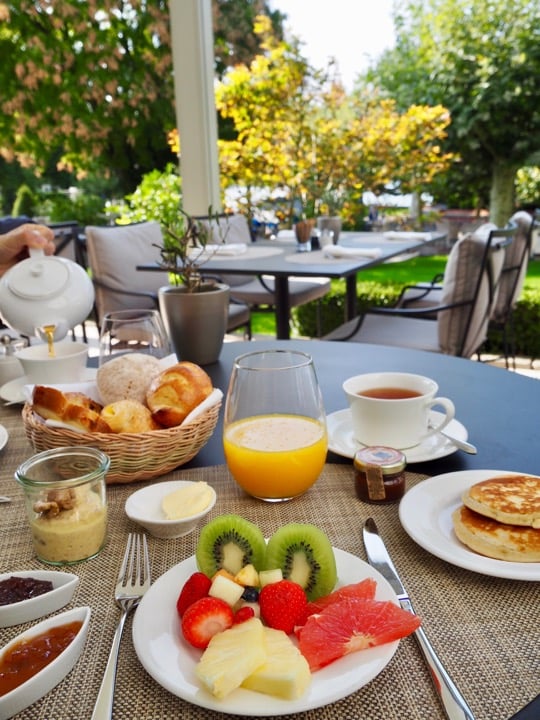 For breakfast, we returned to the brasserie patio to begin our morning surrounded by birdsong. The breakfast buffet was varied and delicious, with both sweet and savory dishes. Brioches, pancakes, and high-quality croissants were juxtaposed with scrambled eggs and locally-sourced cold cuts: a fantastic way to start our day off right!