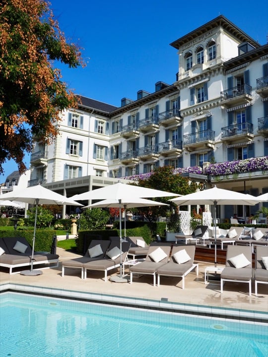 For fans of luxury hospitality, Switzerland is the perfect playing field! I had the pleasure of traveling through on a fabulous road trip from Zurich to Geneva in late August. Along the way, we stopped off at Vevey, the site of one of the country's best establishments: the Grand Hôtel du Lac. It was perfect for me, complete with antique charm, a handful of rooms, two fantastic restaurants, and exemplary service!