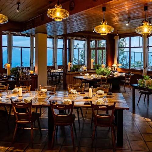Perched at 1,550 meters on Mount Rigi, this Bib Gourmand restaurant practices a rigorous natural cuisine, sourcing ingredients from its own garden and the surrounding Alpine terrain. The kitchen's commitment to sustainability has earned a Michelin Green Star, visible in dishes like the terroir burger and medium-rare Rigi organic beef. Before lunch on the panoramic terrace, guests might sample the house Chrüterwässer—an alcohol-free apéritif of garden herbs and cherry juice.