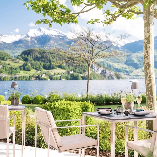 This 1901 lakeside property retains its Belle Époque grandeur through meticulous restoration, its ornate façades giving way to refined contemporary interiors. A therapeutic spa featuring hammam, sauna, and jacuzzi complements the private lido on Lake Lucerne's shore. The Inspiration restaurant delivers international cuisine in sleek surroundings, while gardens and pet-friendly policies suit travelers seeking elegance without rigidity.