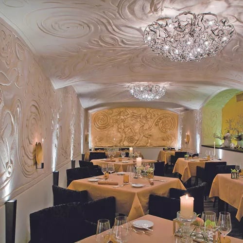 At the gateway to St. Moritz's ski slopes, Chasellas within the Suvretta House operates on a clever dual rhythm. Midday brings hearty Alpine fare suited to snow-dusted appetites, while evenings shift register entirely—herb-crusted rack of lamb arrives alongside chanterelle-asparagus ragout and tender baby carrots. The Michelin-recognized kitchen honors traditional cuisine with quiet confidence, making it equally fitting after a morning on the pistes or for a polished dinner.