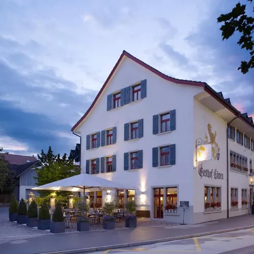 Eight centuries of hospitality survive within this timbered medieval inn, though a family architect transformed the interiors after a fire into spaces of thoughtful modernism. Nine bedrooms range from richly figured wood to minimalist white, the latter designed to frame views of the hilltop village below. The restaurant draws visitors from across the region, making this a worthy detour just twenty-two minutes from Zürich Airport.