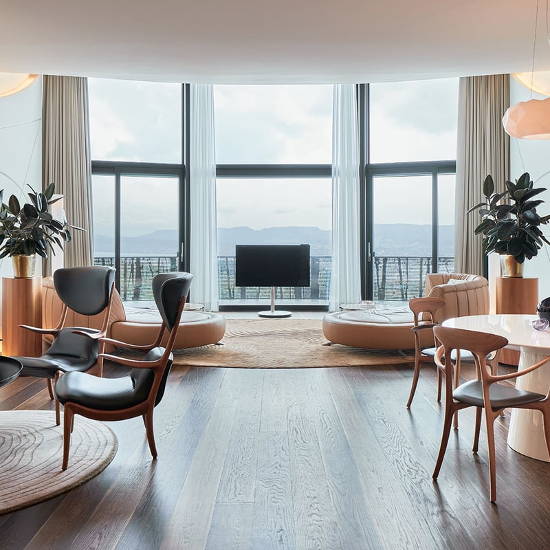 Six centuries of hospitality inform every detail at this Limmat riverfront address, where a private jetty and jazz-drifting waterside bar set an intimate tone. Rooms dressed in warm hues and classic furnishings frame views of the Old Town and twin spires of Grossmünster. The Michelin-starred Rôtisserie anchors the dining program, its summer terrace suspended above the water—a setting that suits couples and culture-seekers equally.