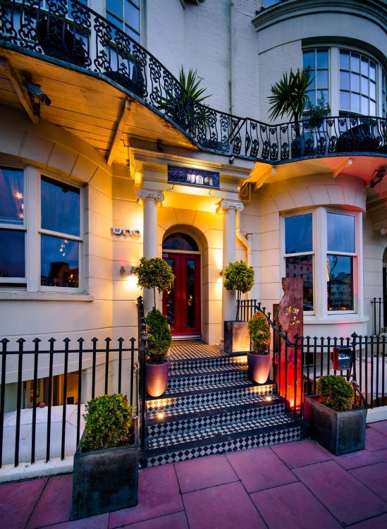 Two Regency townhouses on Regency Square unite behind a single door to form this twenty-room boutique B&B, positioned a short stroll north of the West Pier. Period bones—high ceilings, original fireplaces—meet contemporary art and sharp design throughout. The atmosphere suits couples seeking style without stuffiness, while cots and highchairs make it equally practical for families exploring Brighton's seafront.