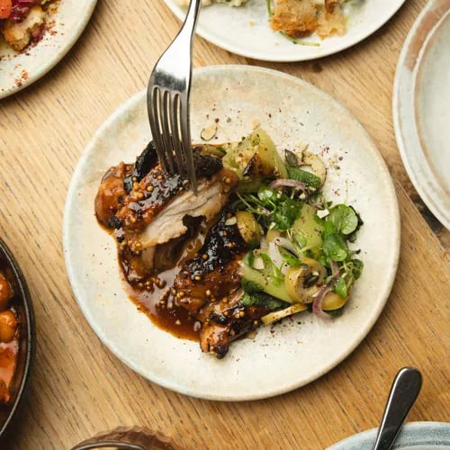Tucked into Brighton's Lanes, this Bib Gourmand address channels a lively, retro-inflected atmosphere where cocktails flow freely and sharing plates arrive from the wood-burning fire. The kitchen draws on Middle Eastern and North African traditions, producing dishes like a golden-crusted leek and spinach pastilla that rewards adventurous palates. A spirited choice for groups seeking bold, flame-kissed cooking.
