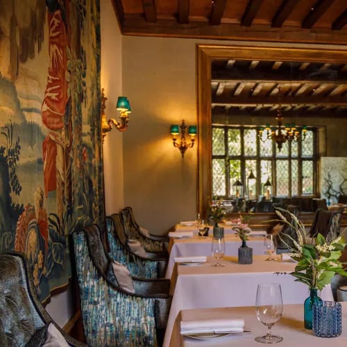 A 30,000-bottle cellar anchors this Berkshire dining room, where sommeliers host WSET classes and wine dinners, memorizing guests' preferences to craft precise pairings. The kitchen works with seasonal British ingredients—Berkshire beef filet with truffle pomme purée, Brixham cod—in dishes that reward thoughtful exploration. Highclere Castle sits ten minutes away, making this a compelling stop for oenophiles touring the Thames Valley.