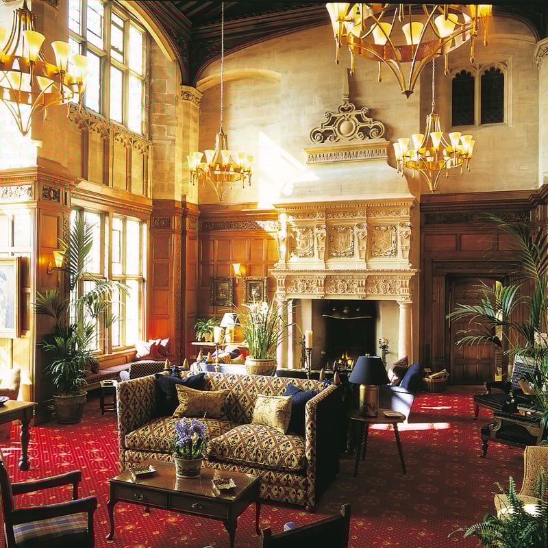 Tudor architecture meets Arts and Crafts interiors at this secluded Dartmoor estate, where 24 bedrooms with marble bathrooms overlook the River Teign and over 100 acres of Devon countryside. Chef Chris Eden's Michelin-starred kitchen draws from the celebrated garden, while outdoors a Peter Allis putting course, tennis court, and croquet lawn complement walks through some of England's wildest landscapes. Ideal for couples and families seeking refined country house hospitality.