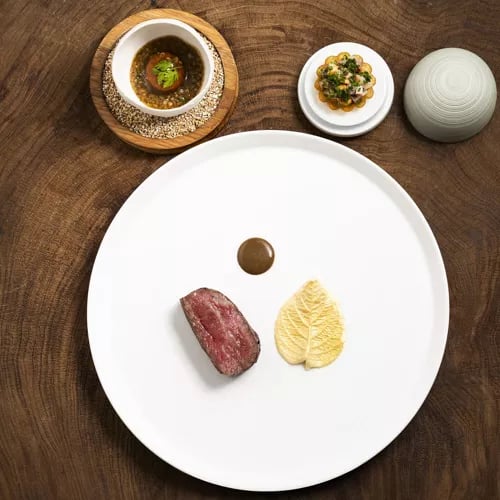 Beneath the original wooden beams of Boringdon Hall's former minstrels' gallery—a structure recorded in the Domesday Book—Àclèaf delivers one-Michelin-starred cooking with quiet precision. The kitchen draws on international influences, balancing flavours with scholarly care: cured hamachi dressed in subtle yuzu ponzu exemplifies the approach. Intimate and historically resonant, this is refined dining for those who appreciate restraint over spectacle.