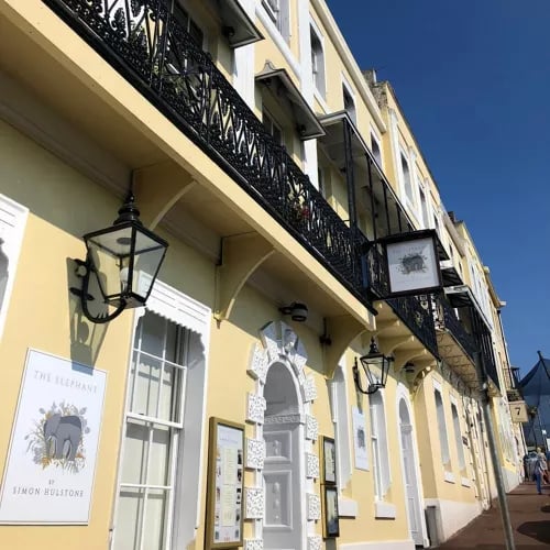 Overlooking Torquay Harbour, Simon Hulstone's one-starred Elephant channels a refreshingly relaxed approach to fine dining—stone tables, low-backed chairs, and playful elephant motifs setting the tone. The kitchen draws from a dedicated 96-acre farm, allowing hyper-seasonal menus where each accompaniment amplifies rather than competes with the main ingredient. The tasting menu remains the clearest expression of Hulstone's precise, produce-driven vision.