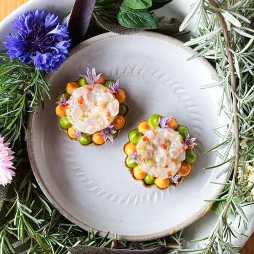 A stone-built former chapel meeting room sets the stage at Chapters, where parquet floors, wood panelling, and leaded windows create an atmosphere of rustic-vintage intimacy. The kitchen's unwavering commitment to sustainability earns a Michelin Green Star, with set menus shaped entirely by hyper-seasonal, local produce. House-made pickles and preserves line the walls, while a small shop offers natural and organic wines to take home.