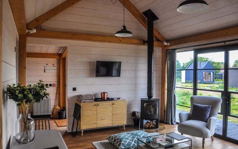 Scandinavian-inspired timber cabins line the Kent coast at this design-forward retreat near St Mary's Bay. A striped-deckchair-bordered pool anchors the social scene, while a dedicated baby pool and bike hire keep younger guests occupied. The Sitooterie gathering space fosters an easy conviviality, and Romney Marsh's atmospheric landscapes lie just beyond—making this a polished base for families seeking style without stuffiness.