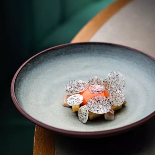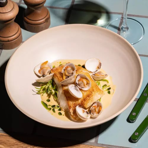 Three friends behind wine bar Flawd launched this Bib Gourmand restaurant with a clear philosophy: grow it yourself, cook it with care. Their Cheshire market garden supplies much of the produce for a sharing-style menu where pork and sherry terrine sits alongside steamed Cornish hake. Counter seating offers front-row views of the kitchen's quiet precision, while the service remains disarmingly warm throughout.