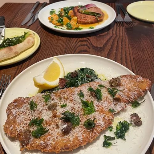 This neighbourhood Italian on Framlingham's Church Street delivers bright, unpretentious cooking with genuine depth of flavour. A wood-fired oven anchors the menu, turning out charred fish and meats alongside house-made pastas and a thoughtful plant-based selection. The all-Italian wine list rewards exploration without punishing the bill, and the same team's adjacent ice cream shop and cocktail bar extend the evening naturally.