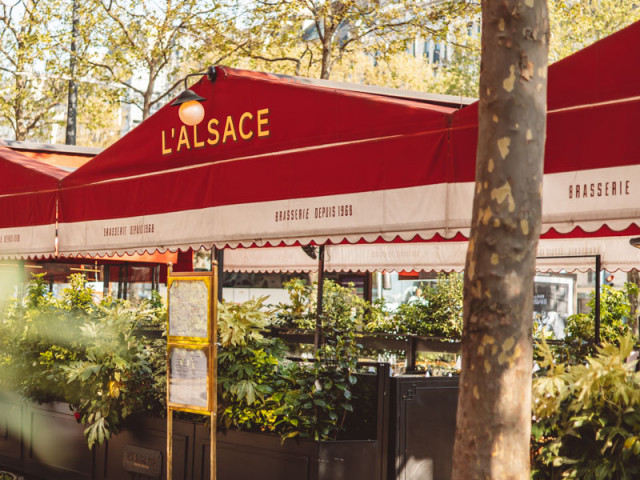 Located on the Champs-Elysées avenue, the L'Alsace brasserie, a Parisian institution since 1968, is renowned for its 24-hour service. The ambiance blends copper, marble, leather, and wood, reflecting the chic spirit of 1960s brasseries. A meticulous renovation in 2014 further enhances its charm, with pastel tones and a large crystal chandelier.