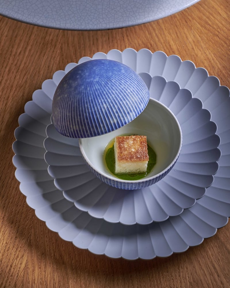 The menu features exquisite dishes where vegetables take the lead role, such as the squash velouté with bacon from Grumbach farm or the night blue lobster with Jura yellow wine. This approach offers a unique experience, where vegetables are not just sides, but the stars of the dish, reflecting the Alsatian influence in Alain Passard's culinary art.