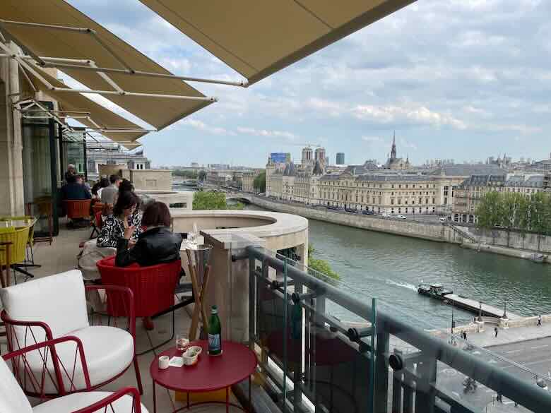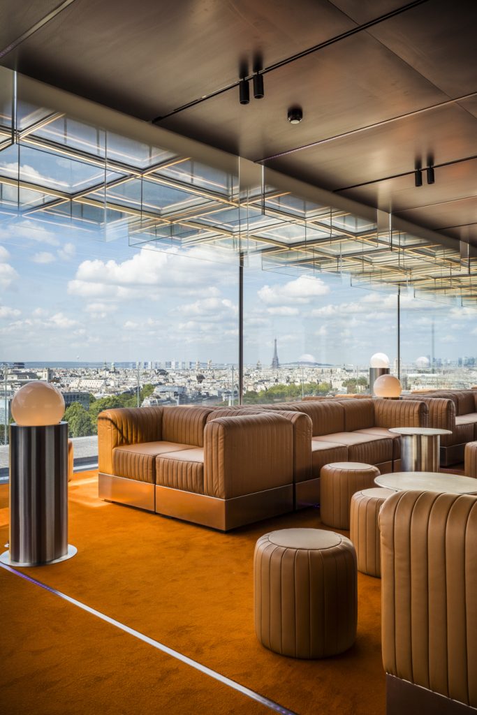 On the 15th floor, Bonnie, designed by Notoire agency, offers a culinary experience in a Space Age setting. The rooftop terrace, with its 360-degree view over Paris, creates an awe-inspiring ambiance, further enhanced by the mirror ceiling from Studio Other Spaces. A perfect blend of fine dining and art.
