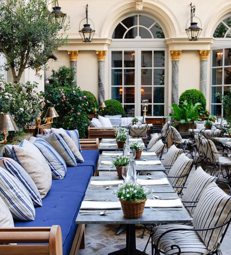 The decor of Loulou, designed by Joseph Dirand, skillfully blends Art Deco style with touches of the 60s. This sophisticated atmosphere, combined with exquisite cuisine prepared by Benoît Dargère, creates a cozy and elegant setting, ideal for business lunches or romantic dinners on the terrace.