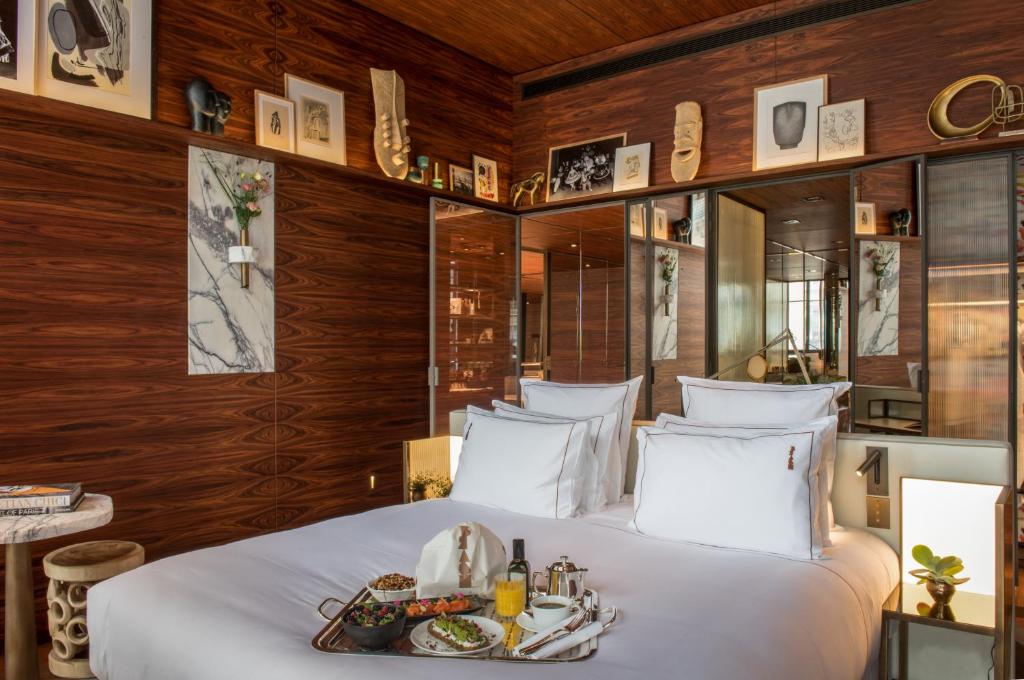 With 59 rooms and suites, Le Burgundy offers a refined aesthetic and comfort. Each room, ranging from 24m² to 210m² for the presidential suite, is enhanced with contemporary art. The suites provide exceptional amenities, some in duplex or with private terraces, all showcasing impeccable taste in design and luxury.