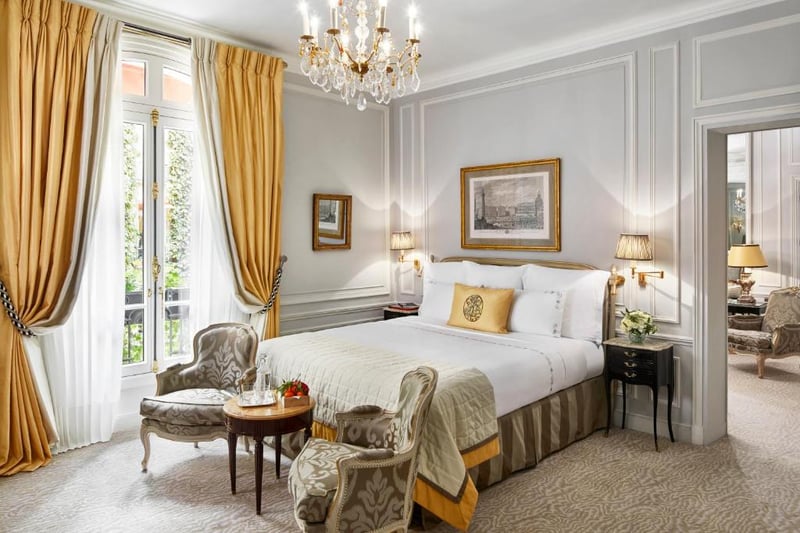 The Bristol's rooms, especially the 100 suites, exhibit a subtle alchemy between classic and contemporary elements, with ancient woodwork and modern touches. The signature suites, like the Suite 1925, attest to the establishment's rich history. The dining experiences by starred chef Éric Frechon offer an unforgettable culinary journey, marking Le Bristol as a symbol of French art de vivre.