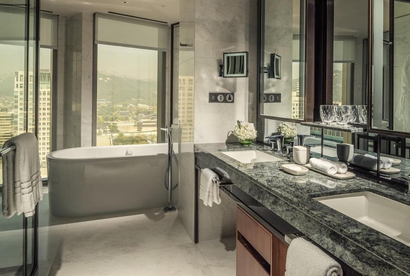 Located in the heart of Seoul, Four Seasons Hotel Seoul stands out for its comfort and luxury, with ivory-toned rooms that elegantly combine modern and traditional decor. Each room features floor-to-ceiling windows that offer unparalleled views of the central Gwanghwamun area, showcasing on one side the grand Gyeongbokgung Palace, the historic home of Korea's kings and queens, and on the other, modern Korea with its skyscrapers and modern public art.