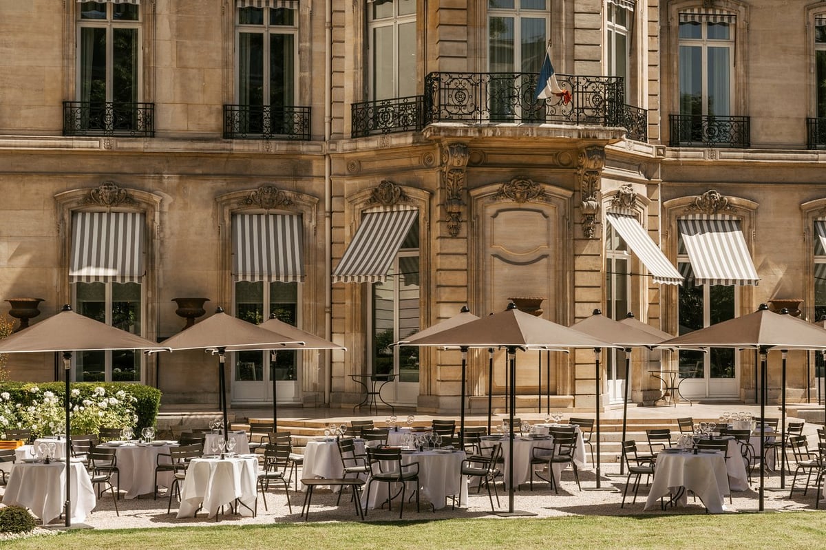 En entrant dans le restaurant, vous serez accueilli par de grandes salles et un élégant bar surplombant un jardin de fleurs animé. La terrasse est sans aucun doute le point d'orgue - l'une des plus belles de la capitale, où jusqu'à une centaine de convives peuvent profiter de la sérénité de ce cadre extérieur pittoresque. L'alliance entre l'opulence historique et l'esthétique contemporaine crée un équilibre agréable, offrant un cadre magnifique pour tout repas.