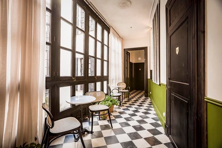 Cette maison du 16ème siècle,réhabilitée en boutique hôtel de luxe par le cabinetd'architecture OHLAB, a traversé les époques, devenant même à unmoment donné un couvent. Ici, le passé rencontre le présentgrâce à un design avant garde qui cohabite avec des œuvres d'artanciennes chinées dans le monde entier. Dès le check-in, nousavons été intrigué par son style bien à lui, que ce soit en termede décoration et d'ambiance mais également grâce au service«comme à la maison» dont les codes rappellent ceuxd'une grande famille.