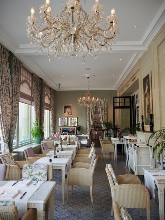 Pour le dîner, deux options sont possibles : on peut soit s'attabler au restaurant « Les Saisons » pour s'émerveiller de la cuisine une étoile Michelin du chef Thomas Neeser qui met à l'honneur les produits de saison et du terroir ou alors à la brasserie « La Véranda » pour une gastronomique plus casual. Le chef étoilé chapeaute les deux restaurants autant dire que le niveau culinaire de la brasserie est d'un niveau exemplaire.