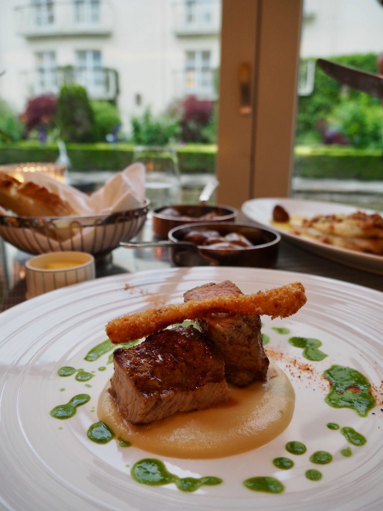 Côté gastronomie, The Merrion offre plusieurs choix: tout d'abord le restaurant Patrick Guilbaud, seul établissement d'Irlande auréolé de 2 macarons au Michelin, qui sert une cuisine raffinée de haut vol. Autre possibilité: The Garden Room sur lequel nous avons jeté notre dévolu avec sa belle salle contemporaine et lumineuse qui offre une jolie vue sur les jardins.