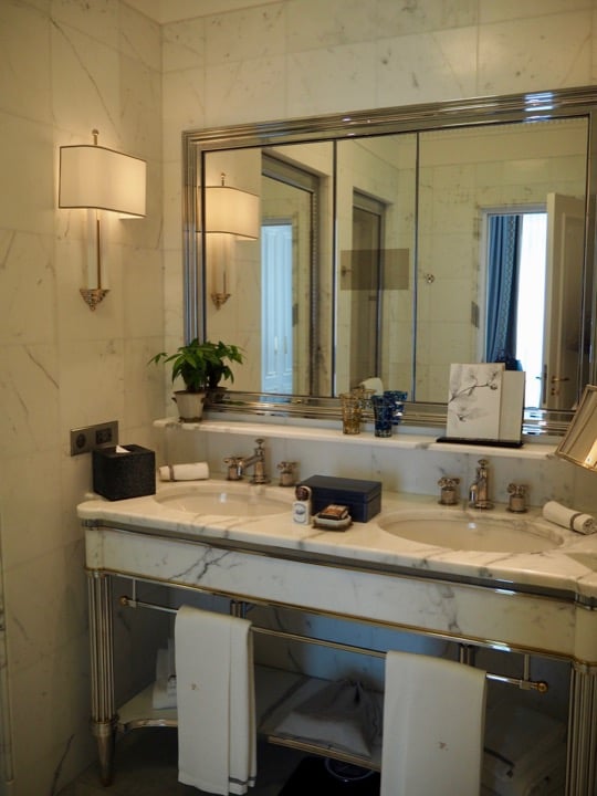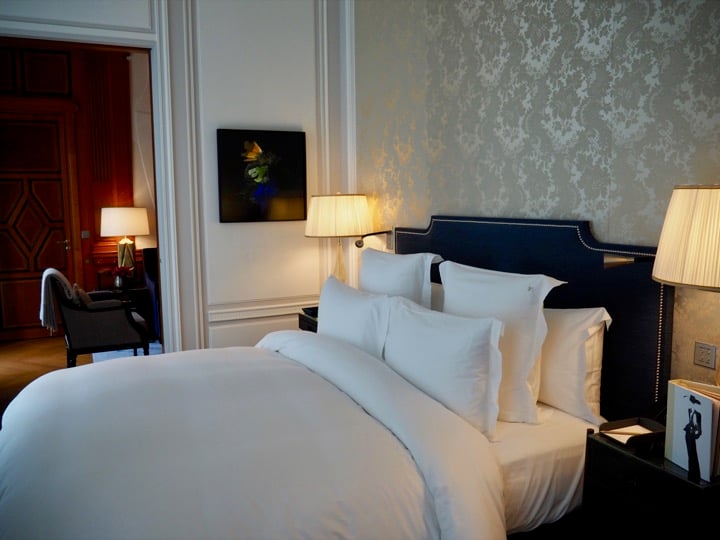 L'hôtel de Crillon abrite 124 clefs dont 36 suites et 10 suites signatures qui incarnent parfaitement l'art de vivre à la française. Nous avons posé nos valises dans une Suite Premier qui offre un espace généreux de 57 m2. On y trouve un salon dont les boiseries confèrent une chaleur au lieu et une chambre séparée. Gros coup de cœur pour son ambiance sophistiquée qui mêle style d'époque et confort dernier cri comme par exemple ce téléviseur intégré dans le miroir de la chambre. Une salle de bain en marbre vient compléter ce petit paradis. Mais j'avoue que ce qui m'a absolument bluffé c'est le soucis des détails qui ont été pensés pour que l'on se sente chez soi, un luxe absolu qui séduit à coup sur.