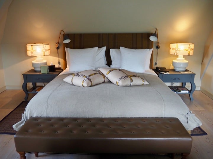 Avec 57 chambres dont 9 suites au total, Le Grand Bellevue fait office d'hôtel intime. Différentes catégories sont proposées et les plus petites nommées « les chambres chics » font déjà 32m2. Pour ma part, j'ai craqué pour la Suite Sommet : elle porte bien son nom car elle est située au dernier étage d'où l'on peut admirer le village en contre bas. Dans ses 62m2 se trouve un grand lit king size, un espace salon avec canapé et une grande table à manger où nous avons pu déguster notre petit déjeuner en toute intimité le lendemain matin. La suite est extrêmement lumineuse et affiche une déco classy et chic. Cerise sur le gâteau, une superbe salle de bain avec vue sur la foret où trône une baignoire centrale.