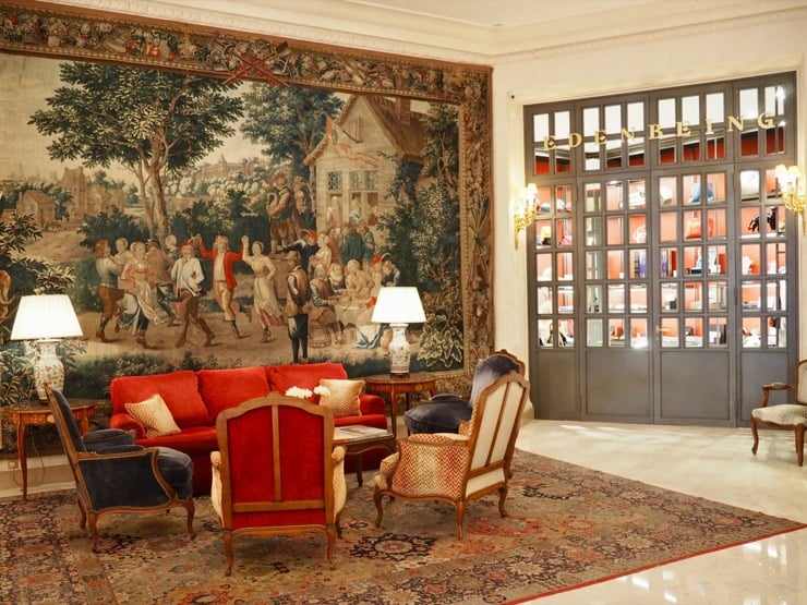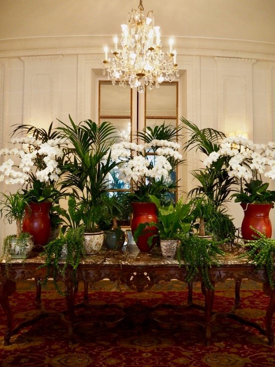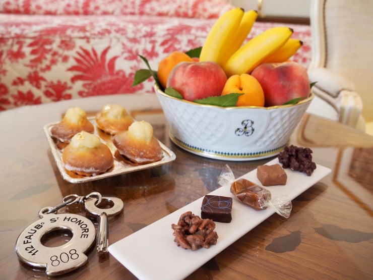Le Bristol fait partie des hôtels les plus prestigieux de la capitale. Sa localisation est déjà une merveille : il est situé à quelques pas de l'Elysée mais surtout dans la fameuse rue Sainte Honorée, réputée pour ses boutiques de prêt à porter de luxe. Une fois les portes franchies, j'ai découvert l'imposant lobby avec son sol en marbre, ses lustres en cristal et ses arrangements floraux, le tout dans le pur style français du 18ème siècle. J'ai été accueillie comme il se doit dans un hôtel de ce standing, d'une manière impeccable : le personnel est prévenant et attentif, j'ai même eu la sensation d'être la seule cliente de l'hôtel, c'est dire ! Ce n'est pas par hasard qu'il a été le premier hôtel en France a recevoir la distinction Palace !