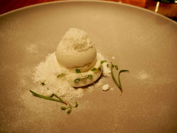 Pour la partie sucrée, c'est le chef pâtissier Michele Abbatemarco qui va nous régaler avec ses créations : on commence avec une panna cotta d'érable aux poires, pommes, dattes et miel pour terminer par un dessert qui porte bien son nom : « Envie de fraicheur » à base de meringue et de glace au citron vert. On retrouve en bouche les inspirations internationales du chef qui a travaillé en France, à Monaco mais aussi dans son pays de naissance.