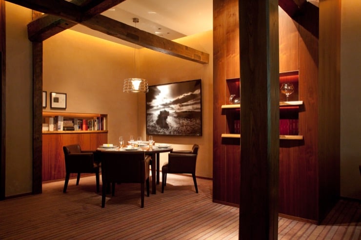 En arrivant dans la salle de restaurant, je suis charmée par l'atmosphère qui s'en dégage : elle est extrêmement chaleureuse et cela est notamment dû à la présence de bois, aux lumières tamisées ainsi qu'aux bibliothèques remplies d'anciens bouquins consacrés à la cuisine française. Nous commençons par une coupe de champagne le temps de feuilleter le menu « Pas à pas » : en 11 plats, nous allons découvrir l'esprit Troisgros et ils seront bien évidemment accompagné d'un accord mets et vins spécialement choisi par le sommelier.