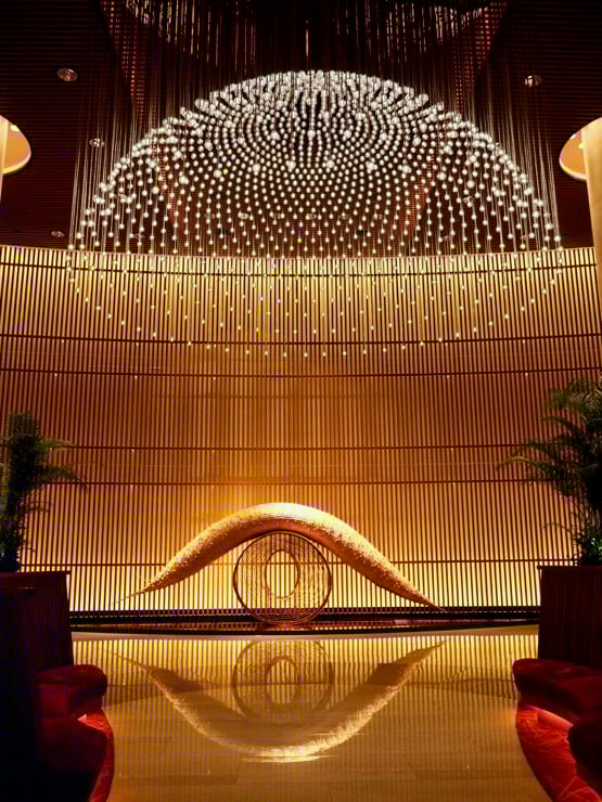 Déposés par notre taxi, nous prenons déjà quelques minutes pour observer cet immeuble de 24 étages à qui l'architecte Kazukiyo Sato a donné l'apparence d'une lanterne traditionnelle japonaise. Une fois la porte tambour franchie, le lobby nous accueille avec un volume impressionnant. Comble du luxe, un immense lustre et une élégante sculpture nous rappelle que nous sommes dans un établissement de prestige. On peut même profiter de ce cadre chic pour déguster dans la partie restaurant un afternoon tea d'une grande élégance et aux saveurs délicieuses.