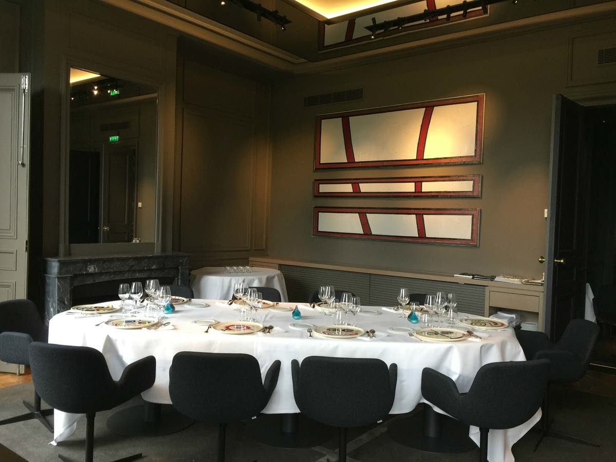 La grandeur de l'ambiance du restaurant est accentuée par une décoration moderne et intemporelle, conférant une atmosphère de charme sophistiqué. Réparties dans plusieurs salles ornées de peintures et de sculptures contemporaines, chaque table offre une expérience unique. Les cadres de fenêtres archaïques qui donnent sur la Seine imprègnent l'ambiance d'un sens de l'histoire riche, se fondant harmonieusement avec les tons modernes de l'établissement.