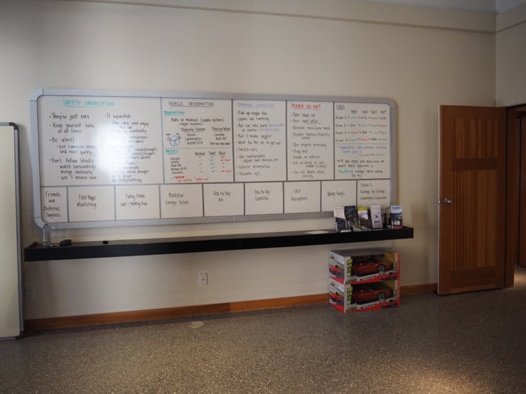 L'accueil est très sympathique et après avoir rempli les papiers d'usage, nous allons admirer les bolides sur le parking. Leurs point communs : ce sont de superbes voitures de sport, parmi les plus rapides du monde ! Une fois l'équipe au complet, nous voilà dans une salle pour un briefing du déroulement de l'après midi : pendant 2h30 nous allons conduire 4 voitures de luxe et cela sur l'une des plus belles route du monde nommée la Sea to the Sky Highway.
