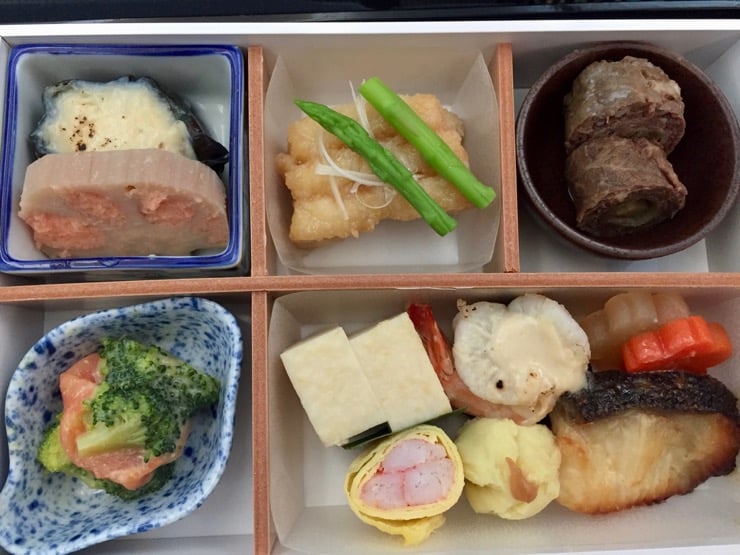 Lors de ces 2 vols, j'ai eu l'occasion de gouter au déjeuner, au diner et au petit déjeuner à bord, de quoi avoir un bon aperçu sur la qualité des mets servis. J'ai opté dans les 3 cas pour la formule japonaise, il y avait une formule occidentale proposée mais je pense que la qualité est bien meilleure sur des produits et des recettes qu'ils maitrisent. Les repas étaient plutôt qualitatifs et assez copieux, ce qui est rare pour les repas en vol. Du coté des snack, c'est la maison Jean Paul Hévin (dont je vous ai déjà parlé dans cet article) qui nous régale avec de délicieux macarons !!