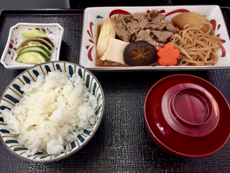 Après un rapide check in aux comptoirs dédiés à la business et le passage des contrôles de sécurité (et tout cela en « fast lane » c'est à dire en accès prioritaire), je regagne le lounge de la compagnie. Ici la sobriété est de mise mais le salon est confortable. Concernant la qualité des mets servis, l'ensemble reste plutôt correct sur les standards japonais. Au menu de ce petit déjeuner : soupe miso, un bol de riz et quelques légumes saumurés !