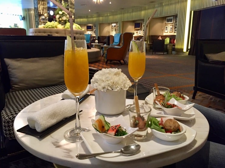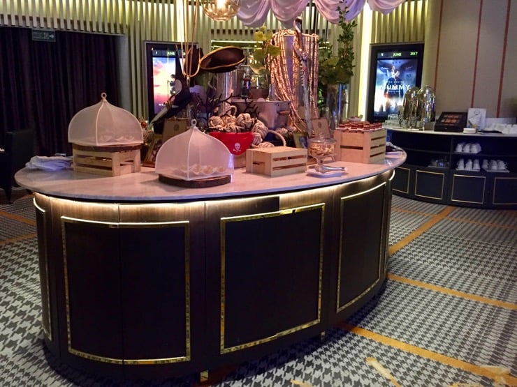 Je m'installe confortablement dans mon fauteuil qui peut se déplier en position allongée, j'ajuste le coussin dans mon dos et je déroule la petite couverture sur moi pour ne pas avoir froid. Cerise sur le gâteau, des serveurs viennent pendant les bandes annonces nous proposer rafraîchissements et snacks (café Starbucks, glaces Haagen Dazs, popcorn, thé, jus de fruits, …), le tout inclus dans le prix de la place ! Le summum du luxe !