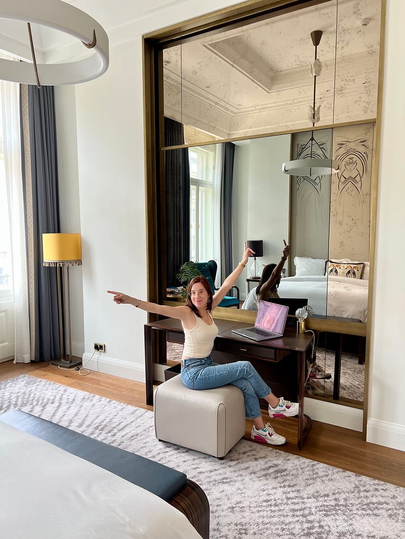 La chambre Matild, où nous avons eu le privilège de séjourner, est l'incarnation même du raffinement. Avec ses 37 m2 et ses hauts plafonds, c'est une sensation d'espace incommensurable ! La décoration est un mélange subtil de contemporain et d'authentique, agrémentée d'œuvres d'art créées par des talents locaux.