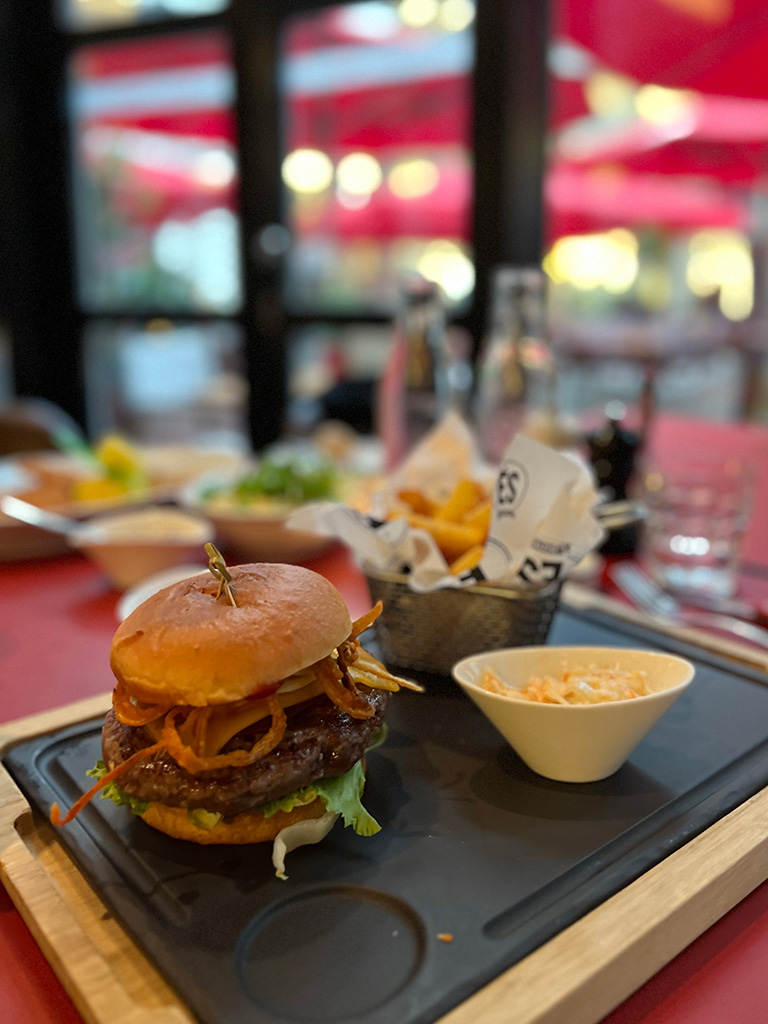 Lors de notre séjour, nous avons eu le plaisir de dîner dans ce restaurant et avons passé une excellente soirée, en toute décontraction. Nous avons commencé par une entrée de saison, des asperges rôties, avant d'enchaîner sur deux plats reflétant l'essence de ce lieu : un burger pour mon compagnon et une escalope viennoise pour moi. Les deux étaient délicieux ! En dessert, le sponge cake à la pistache était parfait, bien que légèrement trop sucré à mon goût.