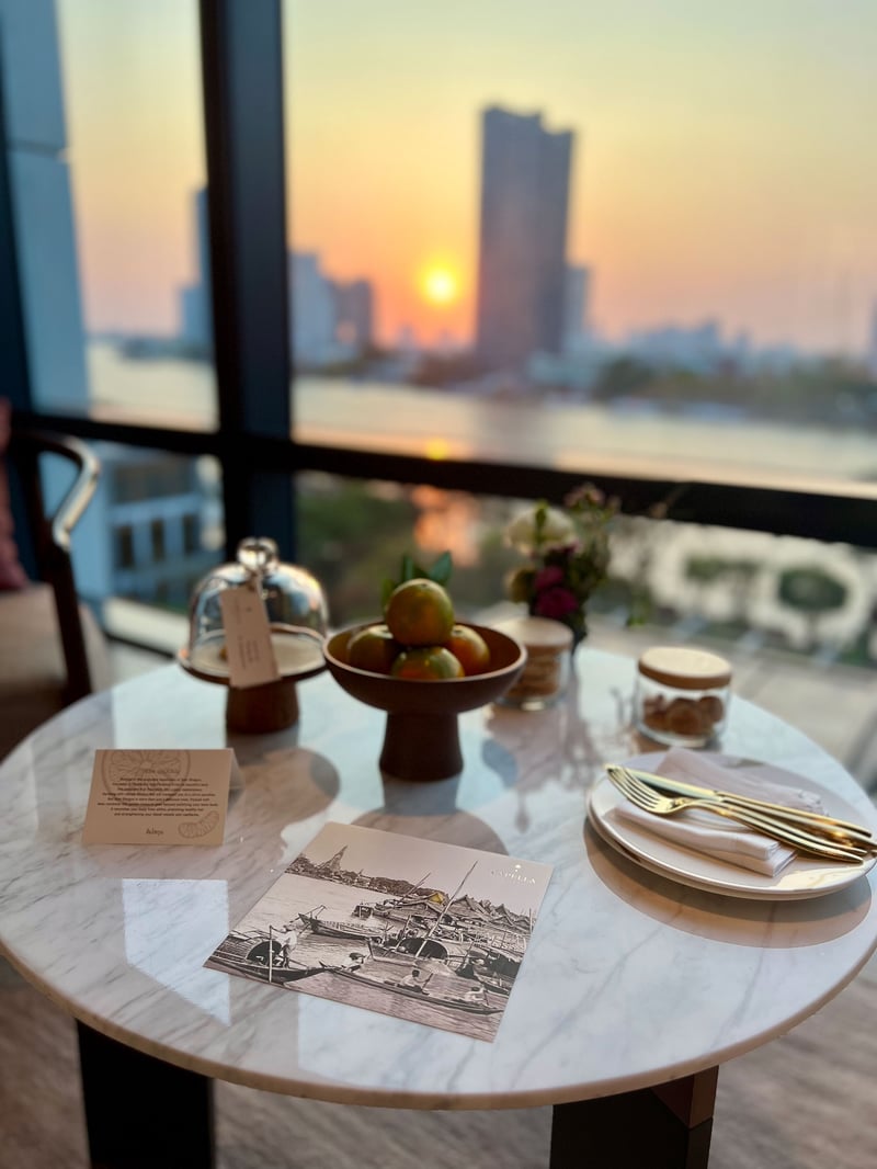 L'hôtel Capella Bangkok propose une expérience intime avec seulement 101 clés, offrant à chaque invité une évasion luxueuse et privée. Avec une superficie minimum de 61 m², les chambres maximisent confort et vue grâce à de grandes baies vitrées. L'aménagement intérieur offre un cocon de sophistication : teintes douces, matériaux naturels, œuvres d'art locales et salles de bains en marbre fusionnent pour créer une atmosphère de sérénité et de luxe. Nous avons séjourné dans une chambre Riverfront Premier, située aux étages supérieurs. Son élégance résidentielle et sa vue unique nous a séduits dès les premiers instants. Chaque chambre bénéficie d'un balcon ou d'une terrasse, idéal pour admirer l'animation de la rivière à l'aube ou pour se détendre au crépuscule tout en célébrant la beauté du paysage.
